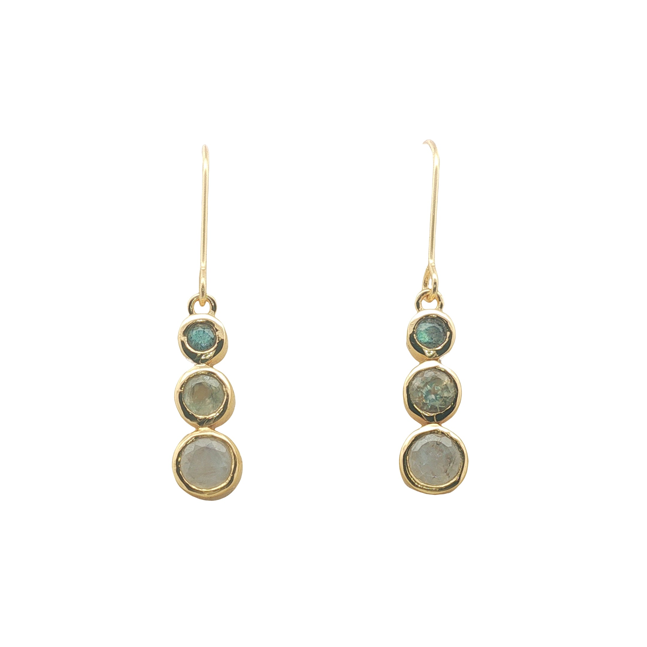 Boucles d'oreilles trilogie en labradorite, prehnite et pierre de lune