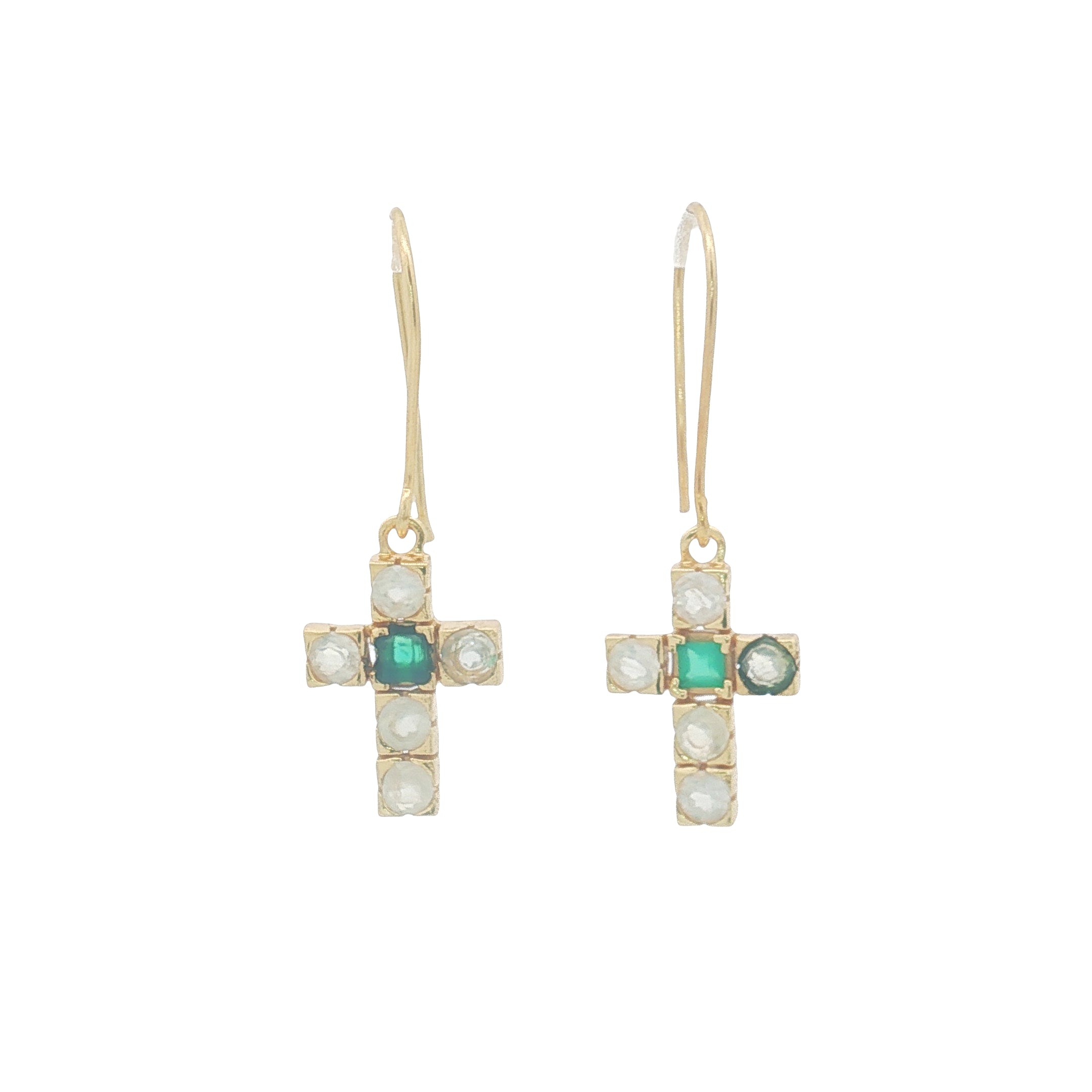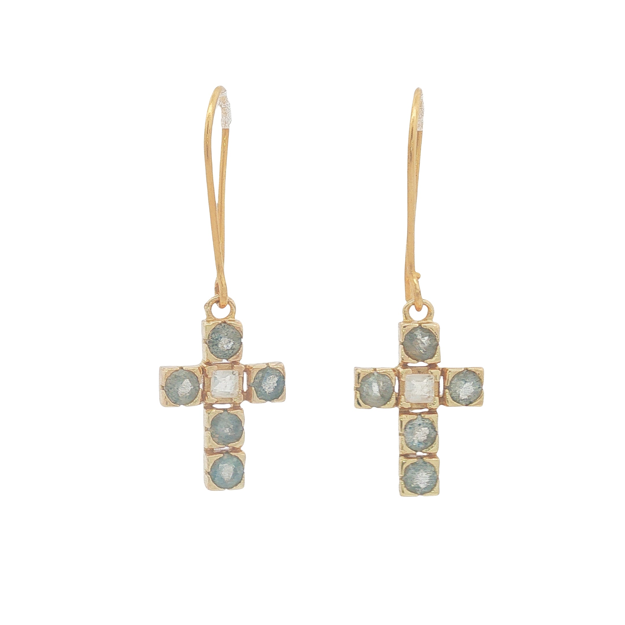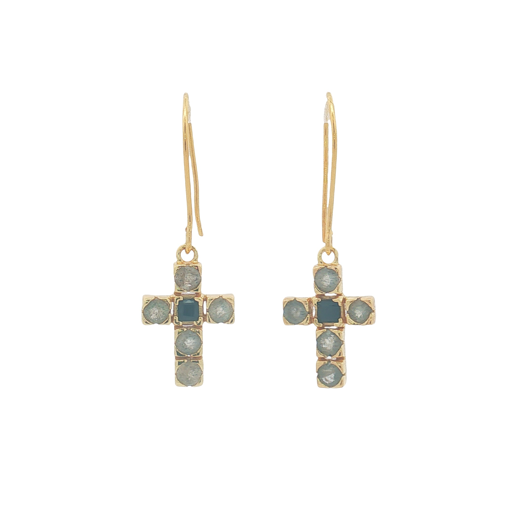 Boucles d'oreilles dorées croix avec pierres