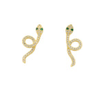 Boucles d'oreilles dorées serpent avec zircons blancs et verts