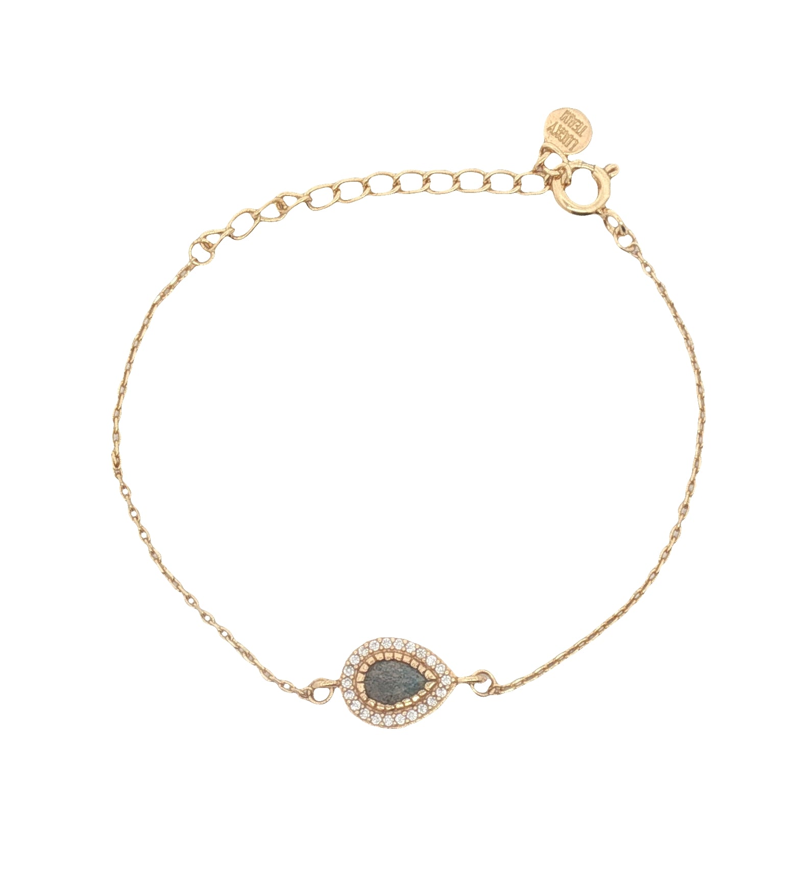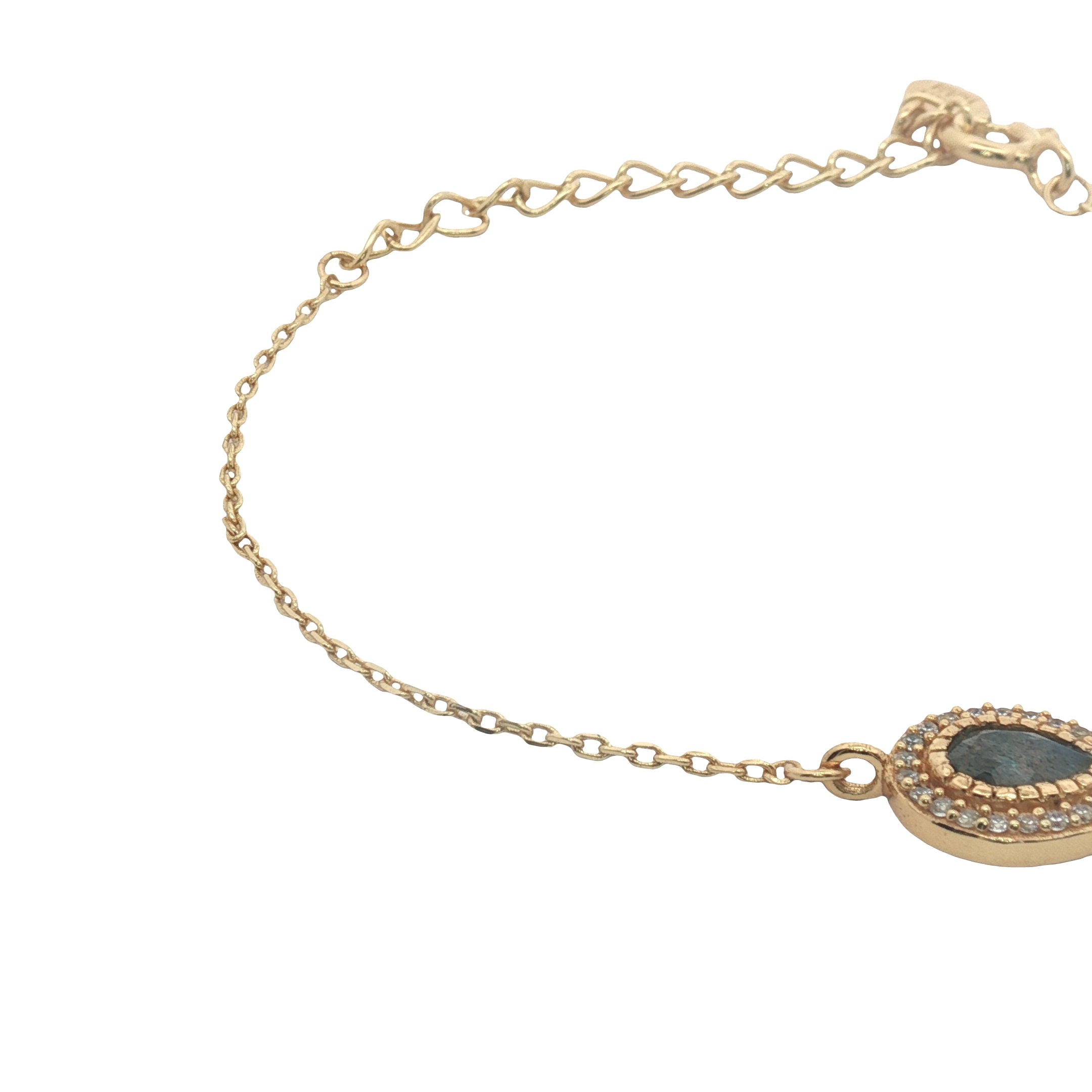 Bracelet doré goutte en labradorite et zircons