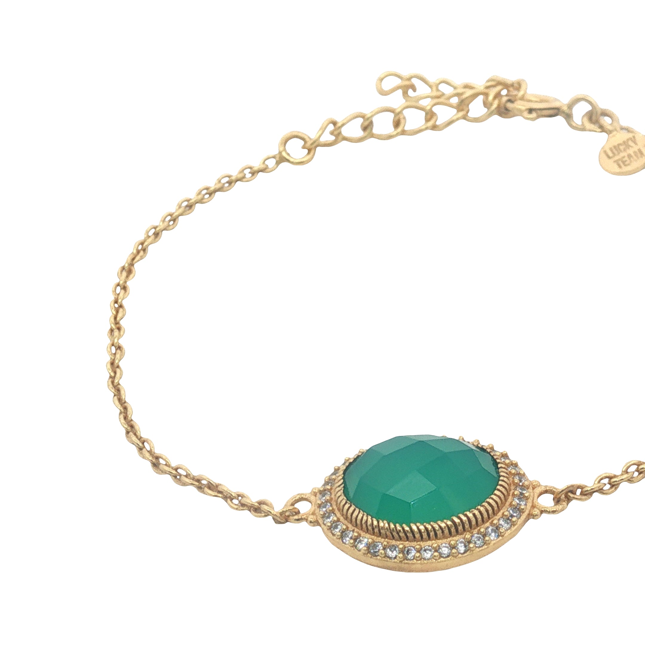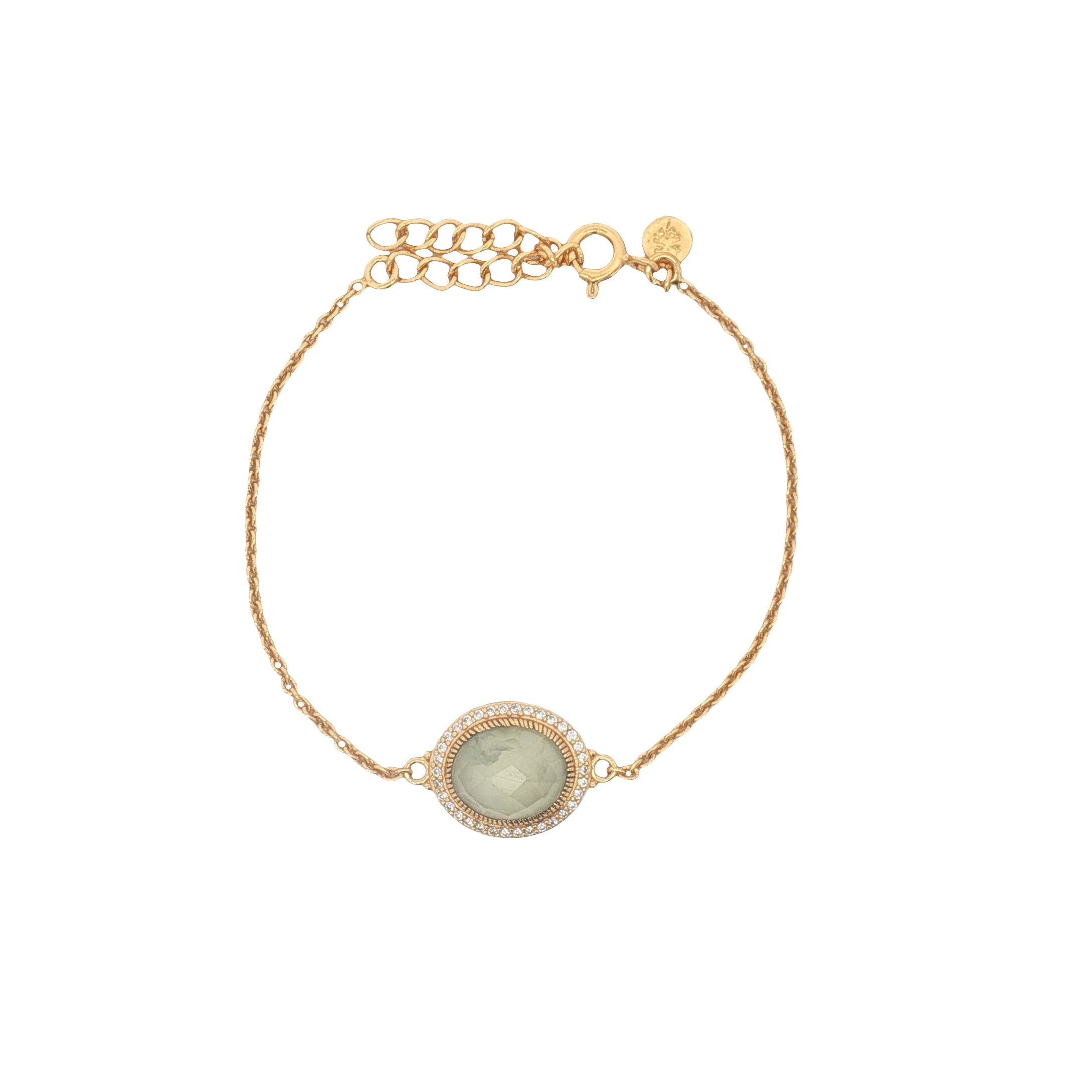 Bracelet doré pierre ovale facettée et zircons