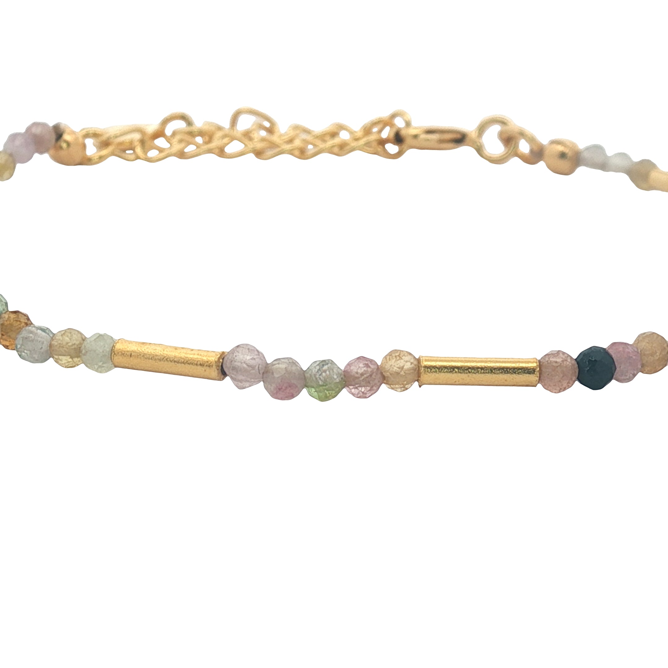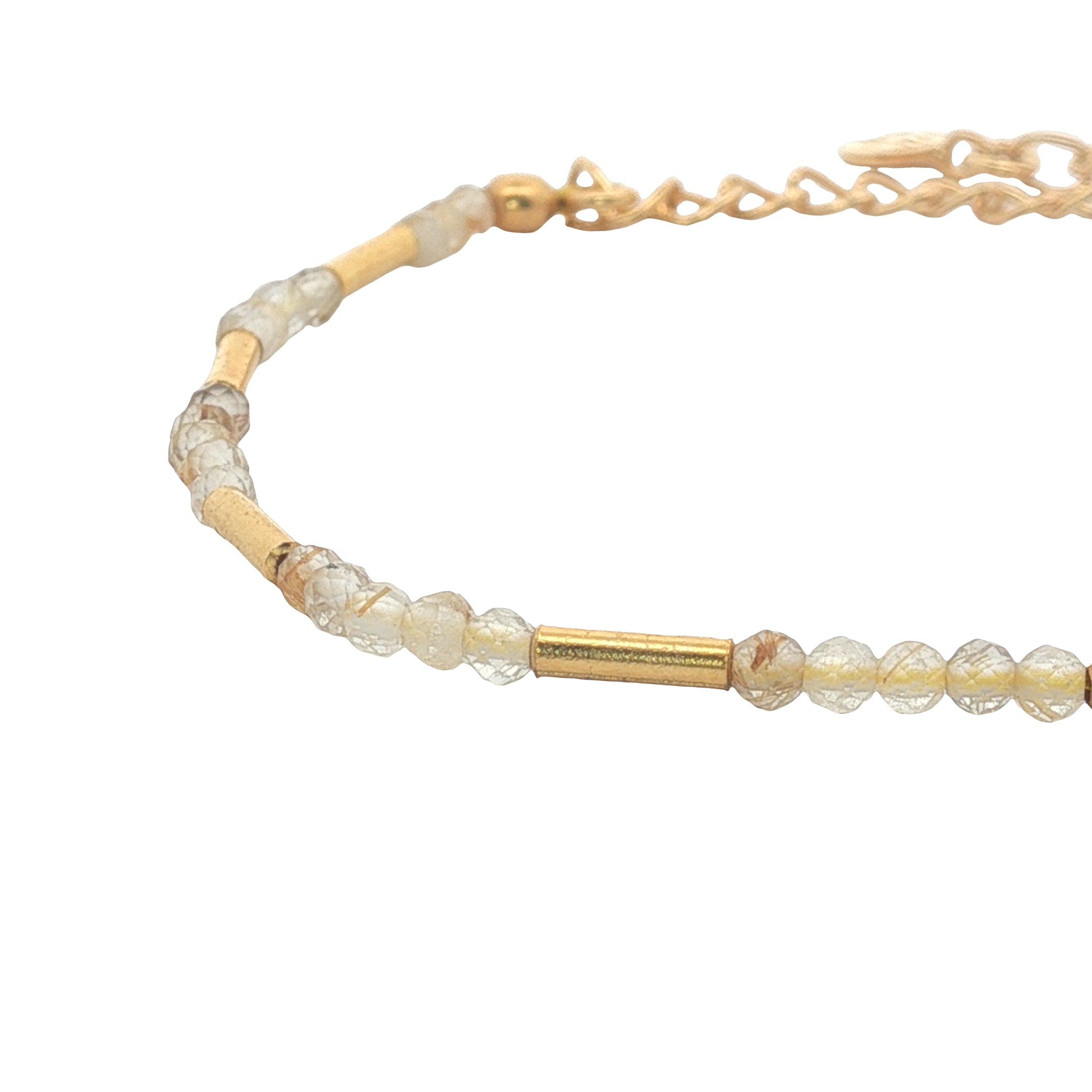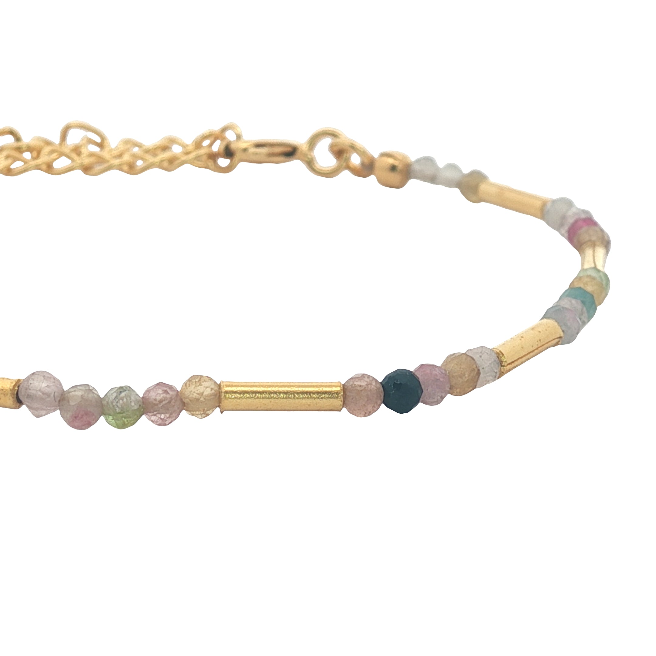 Bracelet avec pierres naturelles facettées et tubes dorés