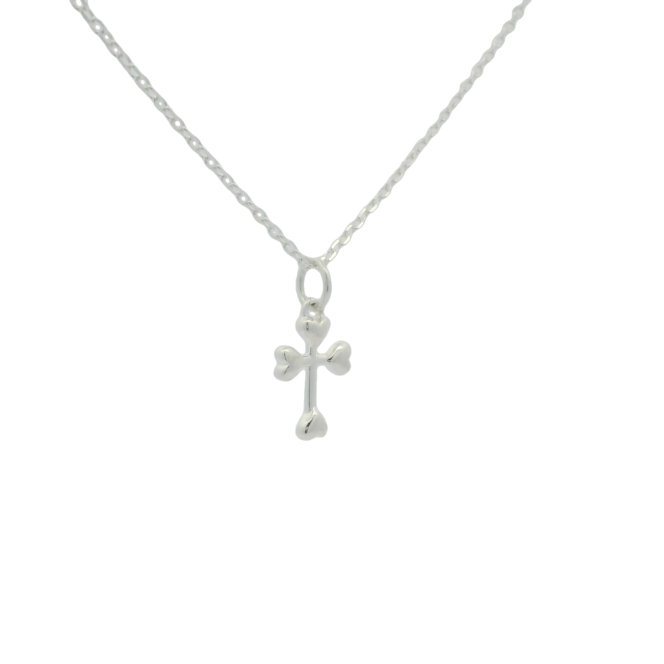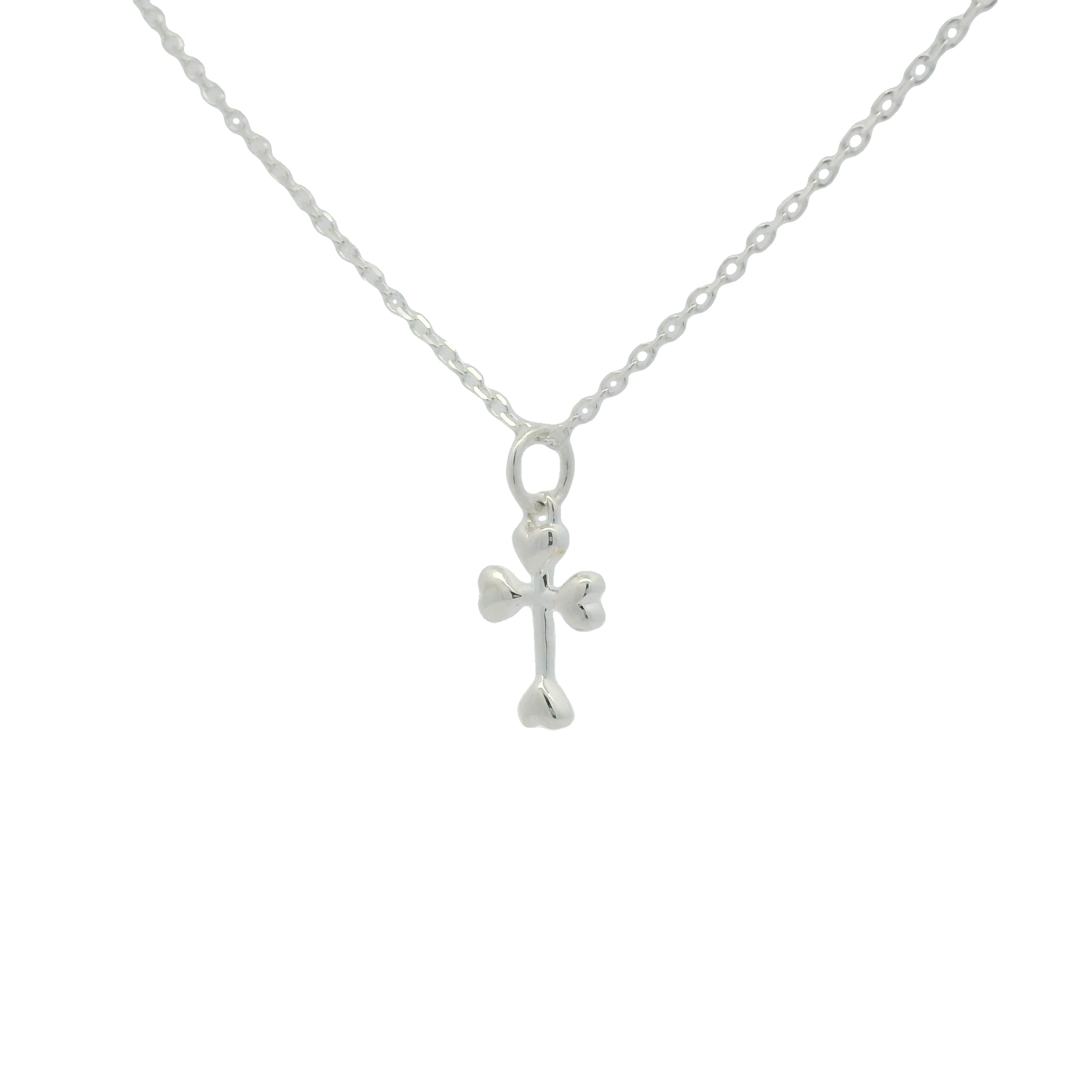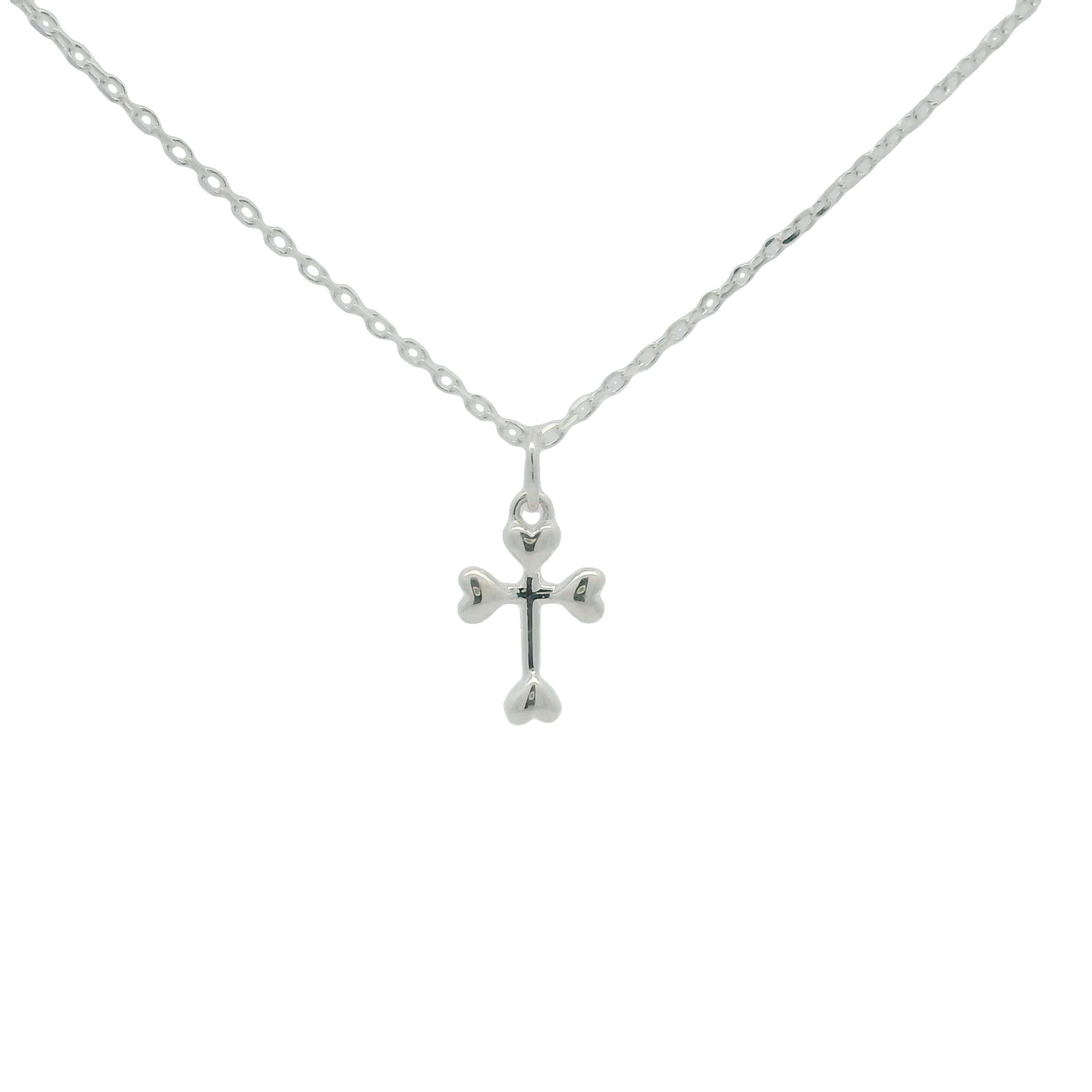 Collier en argent 925 petite croix avec coeurs aux extrémités 42 cm
