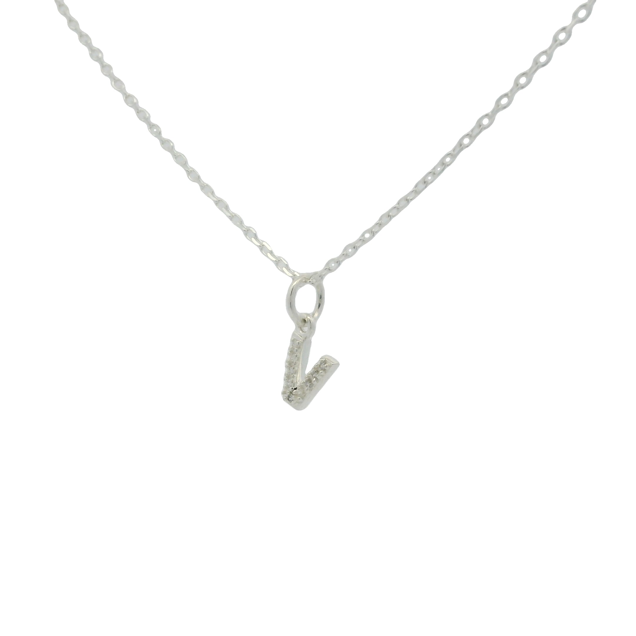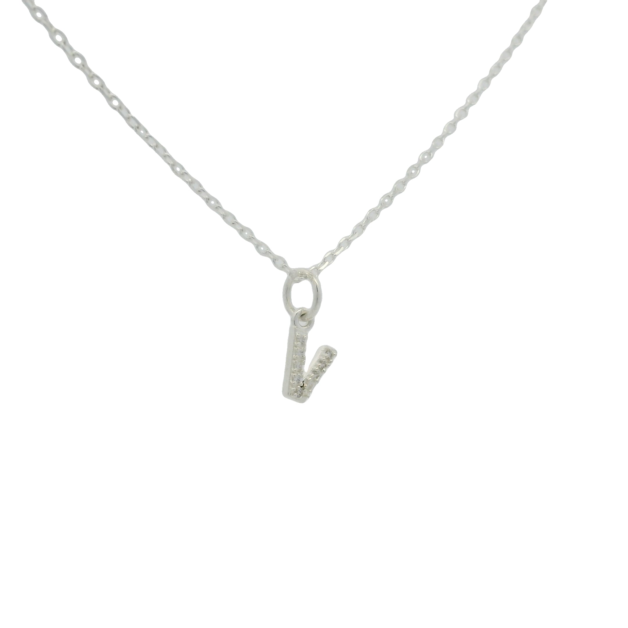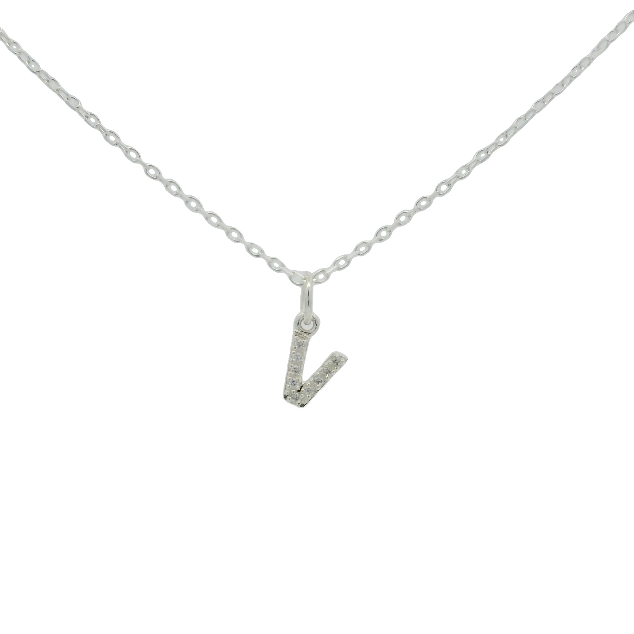 Collier en argent 925 petite lettre V zircons blancs 42 cm