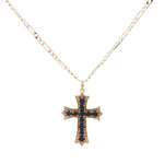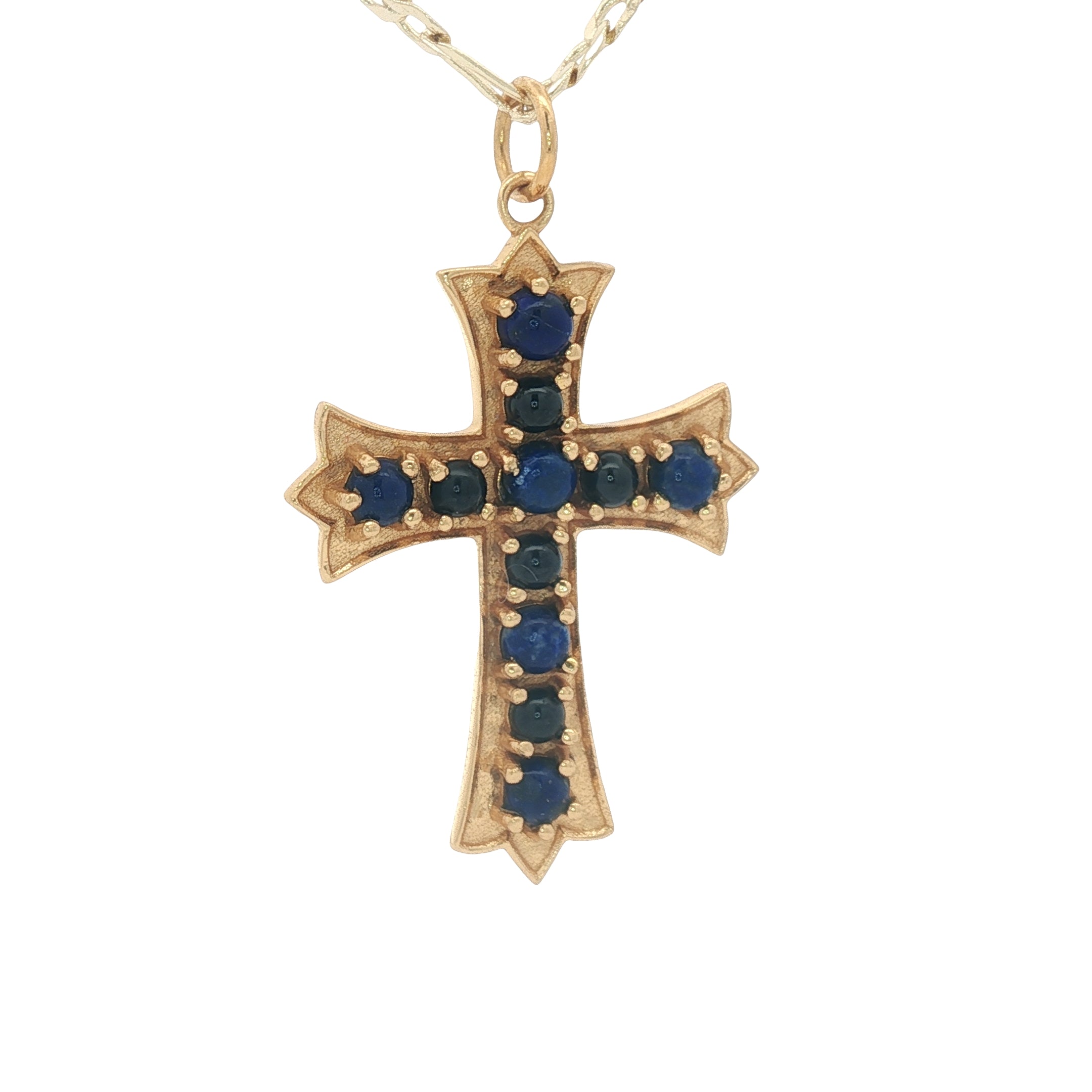 Collier doré croix gothique avec lapis lazulis 50 cm