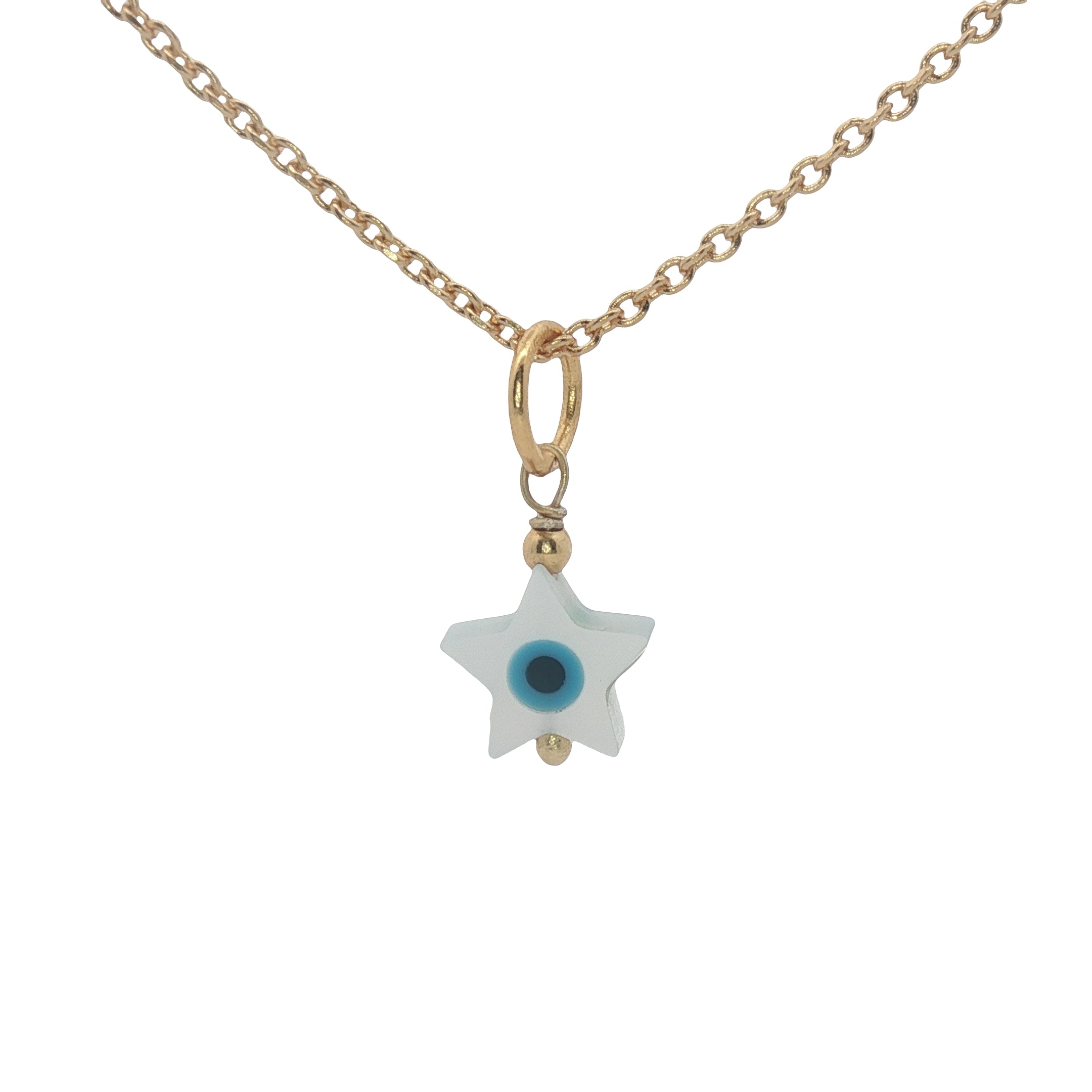 Collier doré étoile de David en nacre avec oeil 42 cm