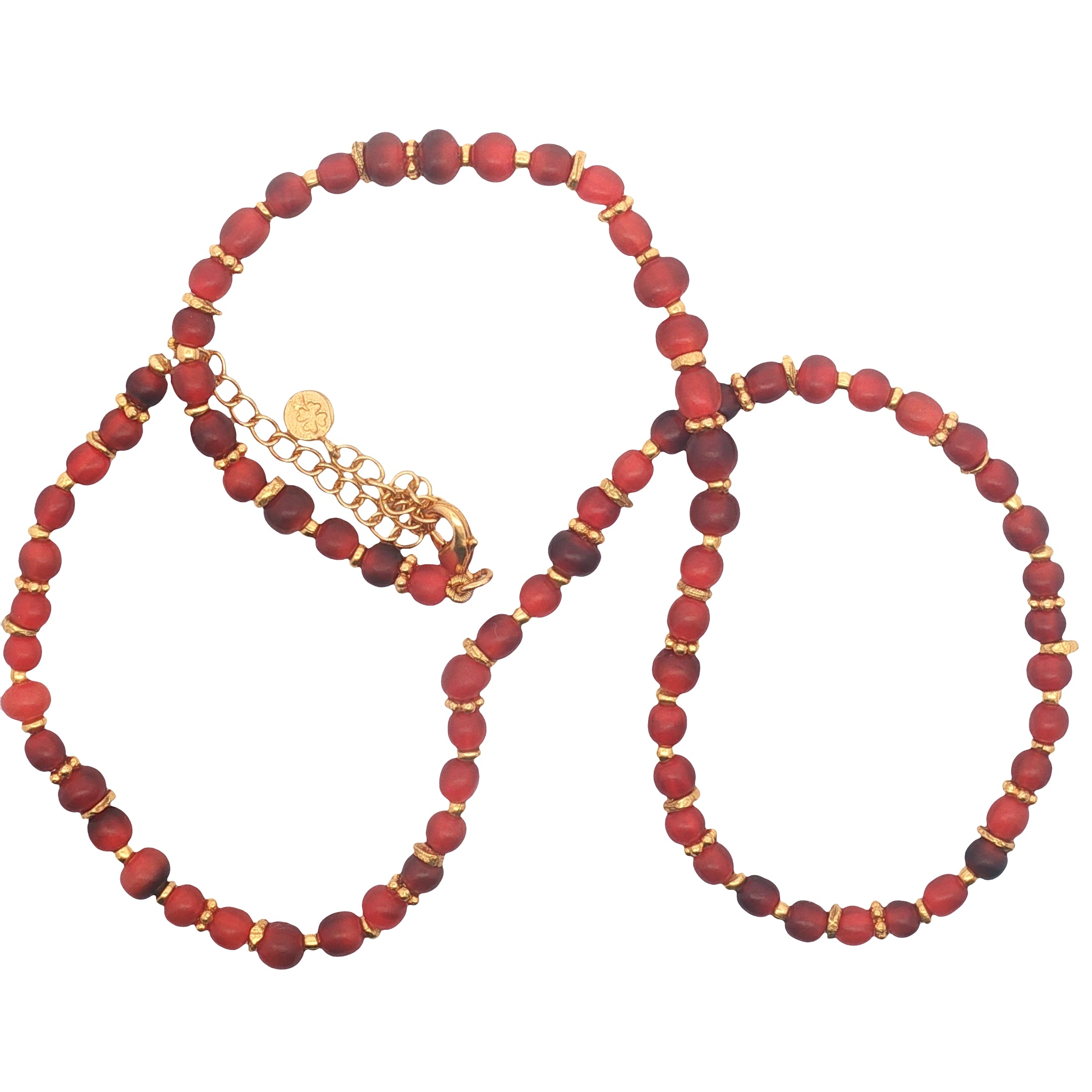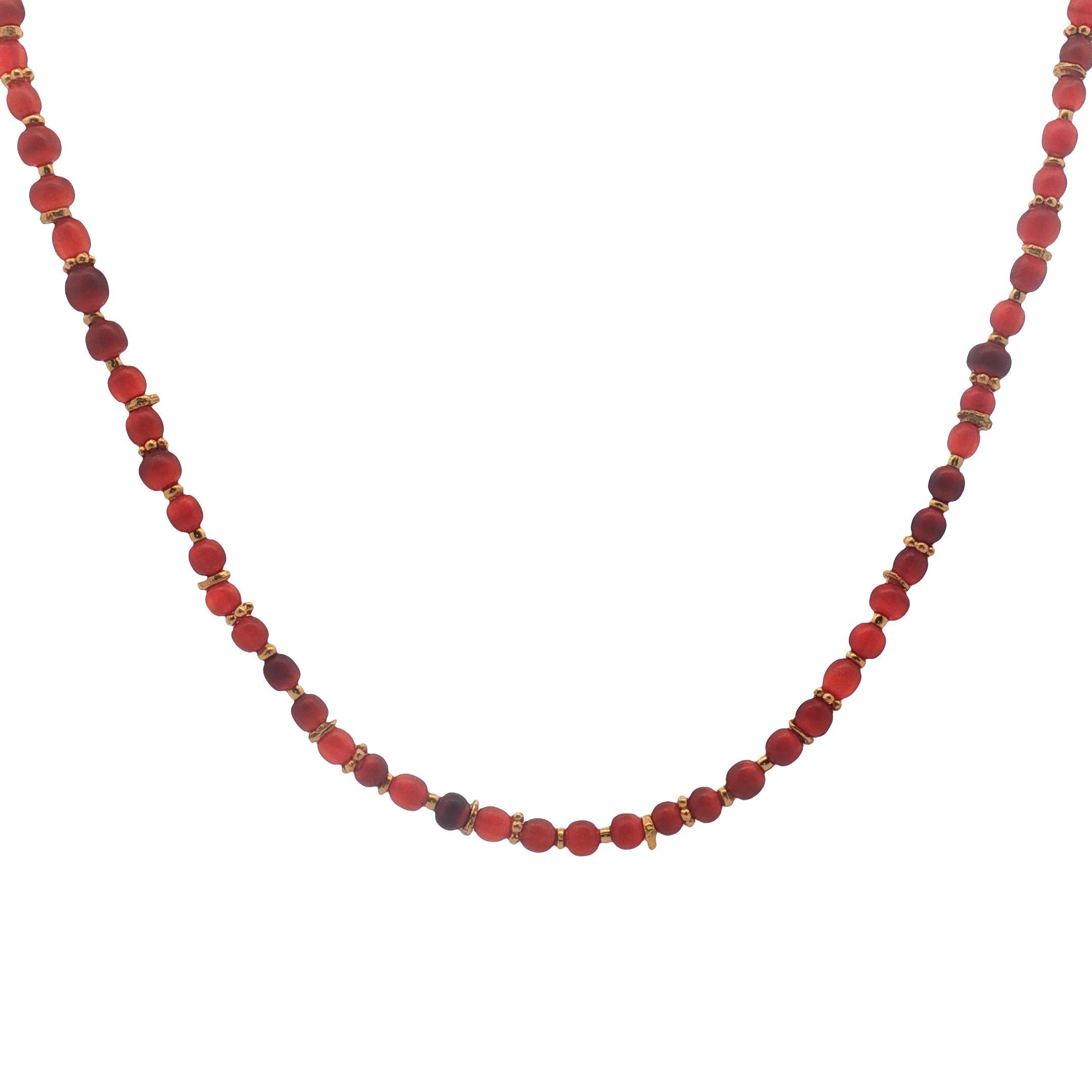 Collier avec perles en agate rouge naturelle espacées de disques dorés