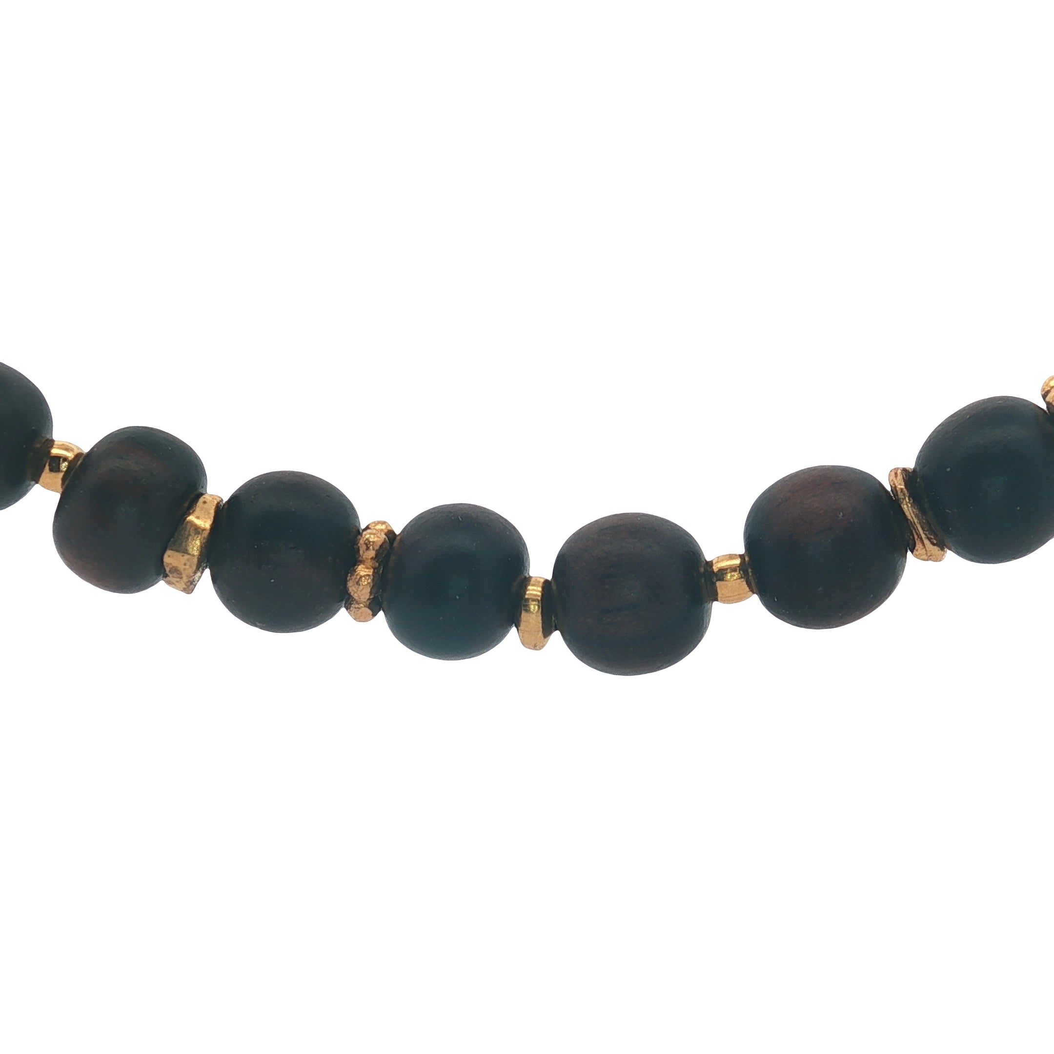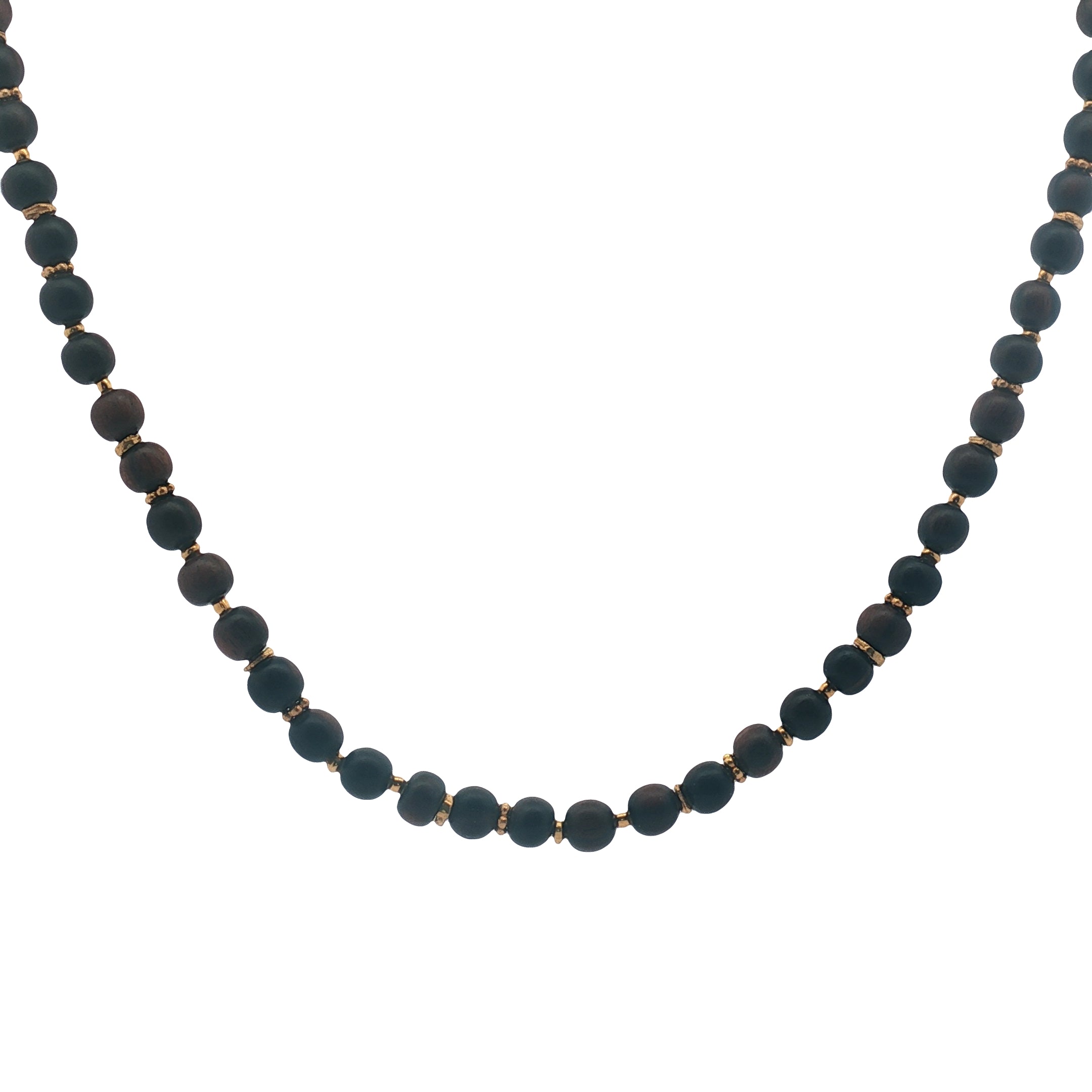 Collier avec perles de bois naturel marron espacées de disques dorés