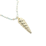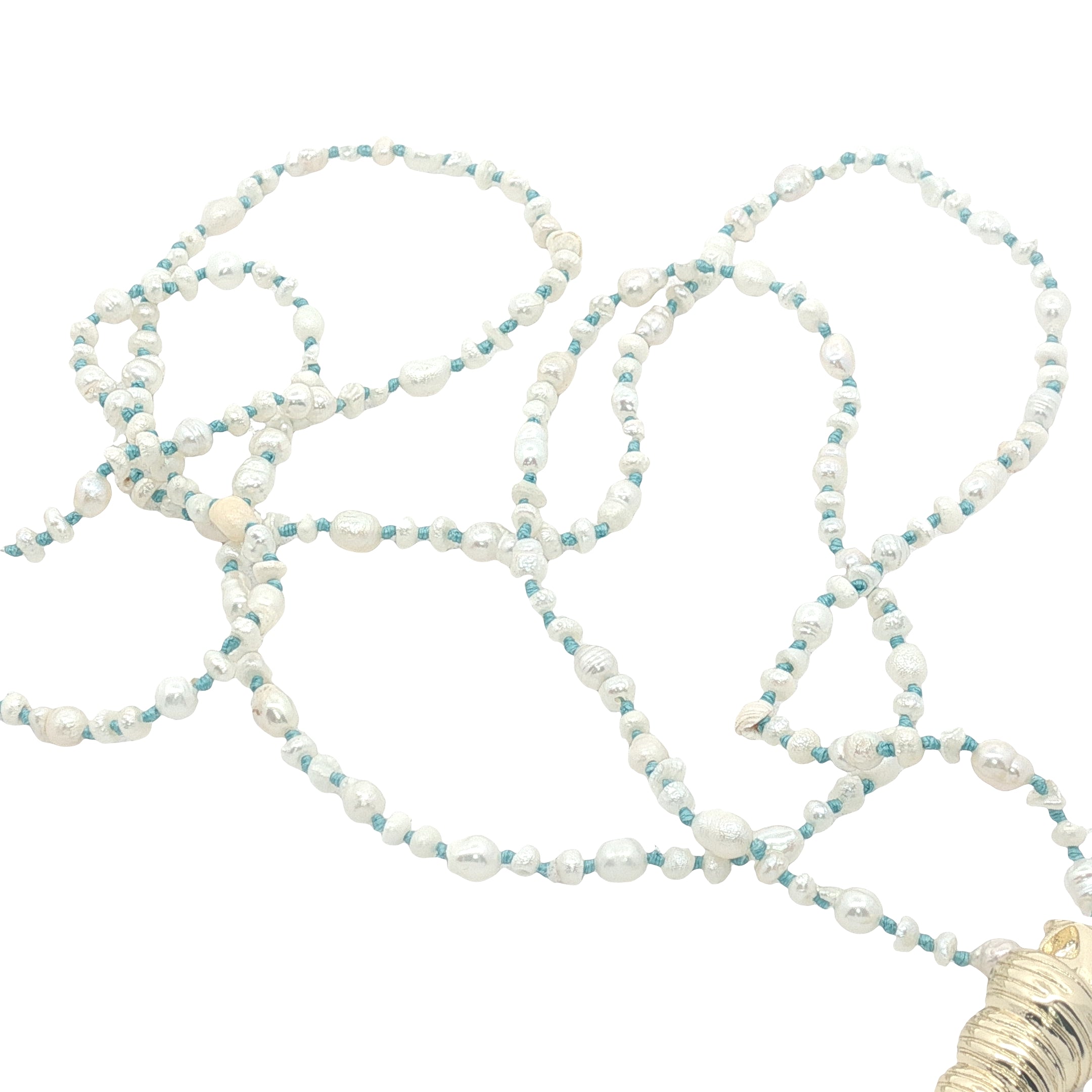 Collier doré petites perles de culture et coquillage torsadé doré 75 cm