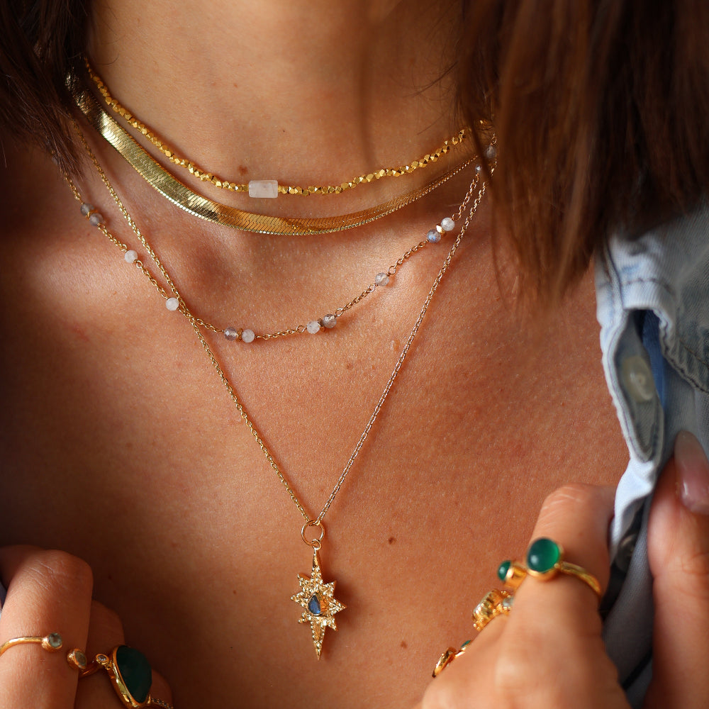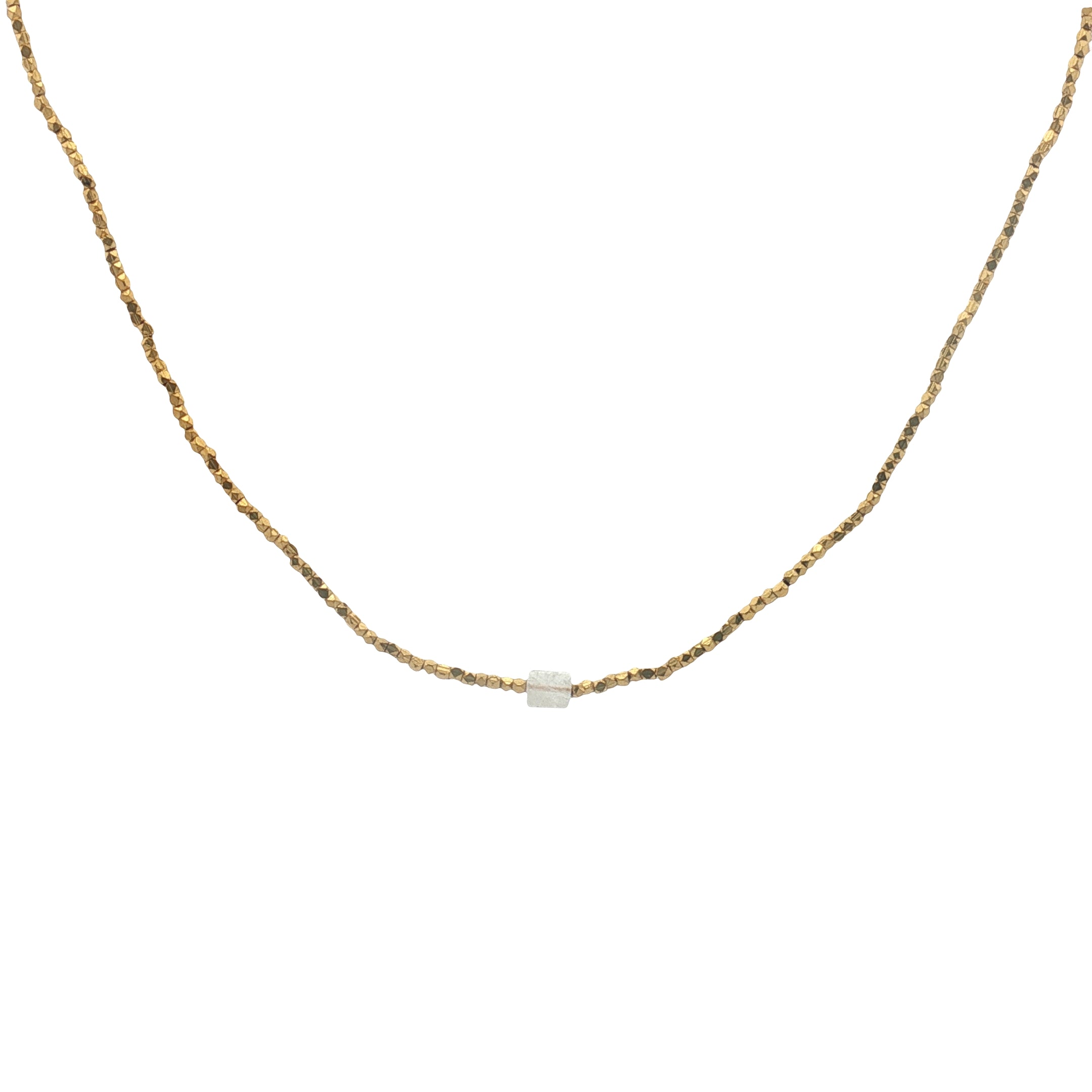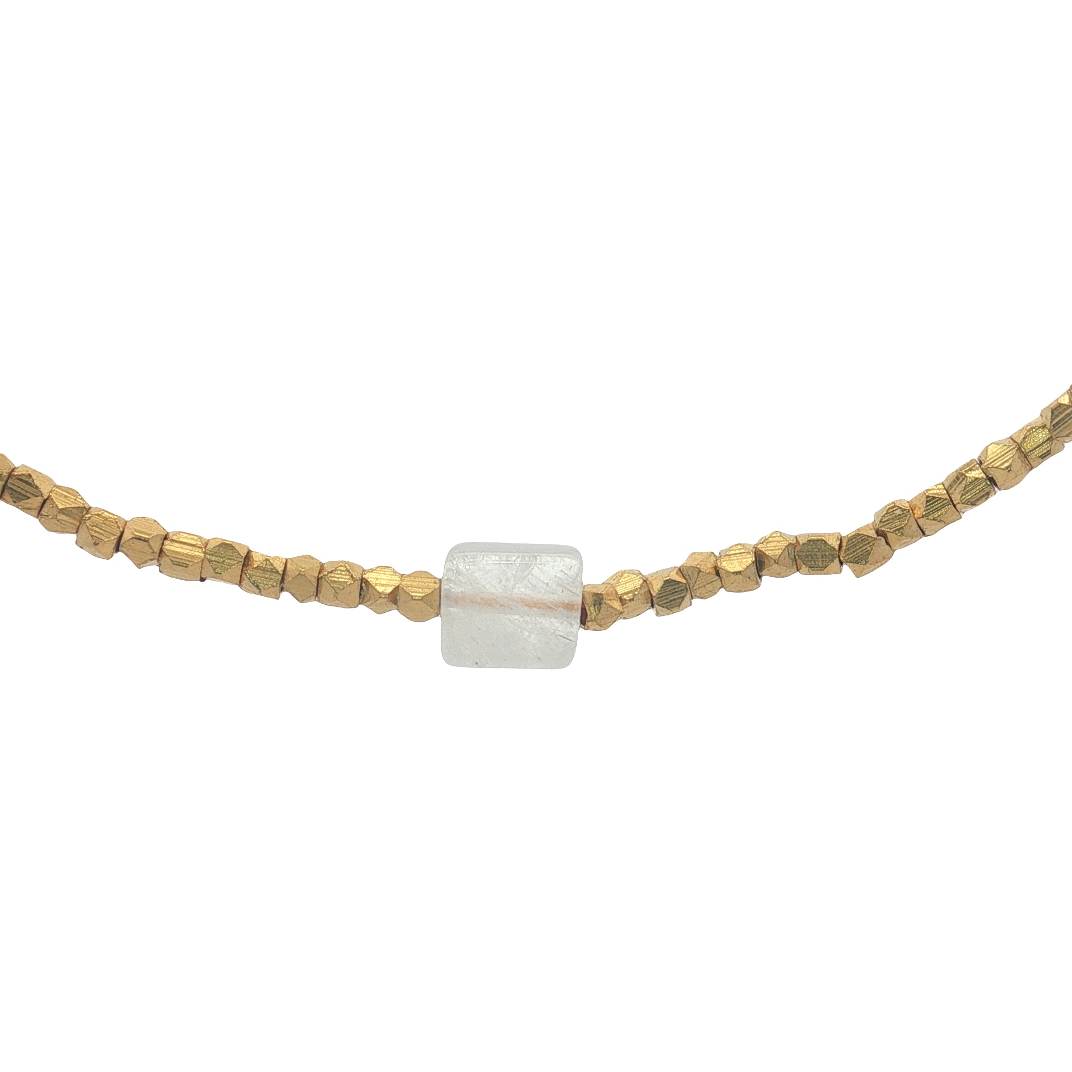 Collier perles dorées pierre de lune carrée 40 cm