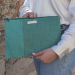 Nos pochettes en Kantha sont entièrement réalisées à la main à partir d'anciens saris traditionnels. Ils sont ré-assemblés tel un patchwork grâce à à la méthode du Kantha qui est un point de couture spécifique.