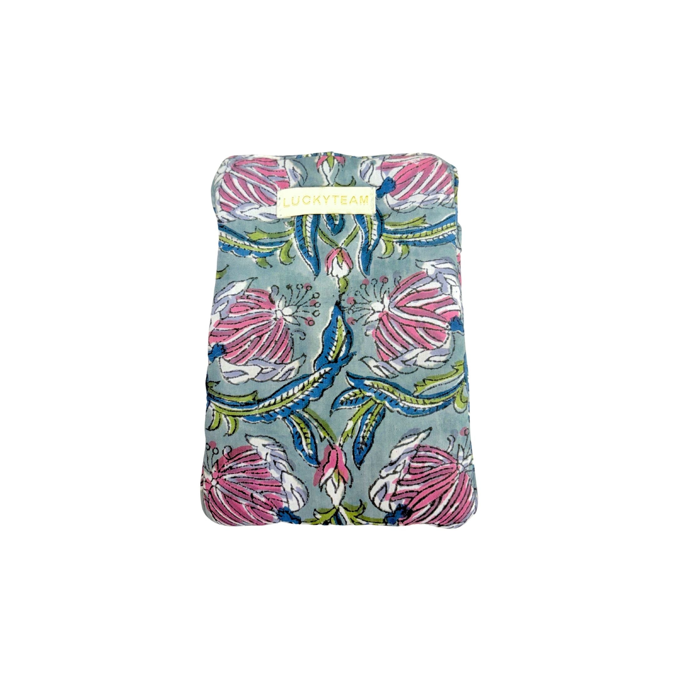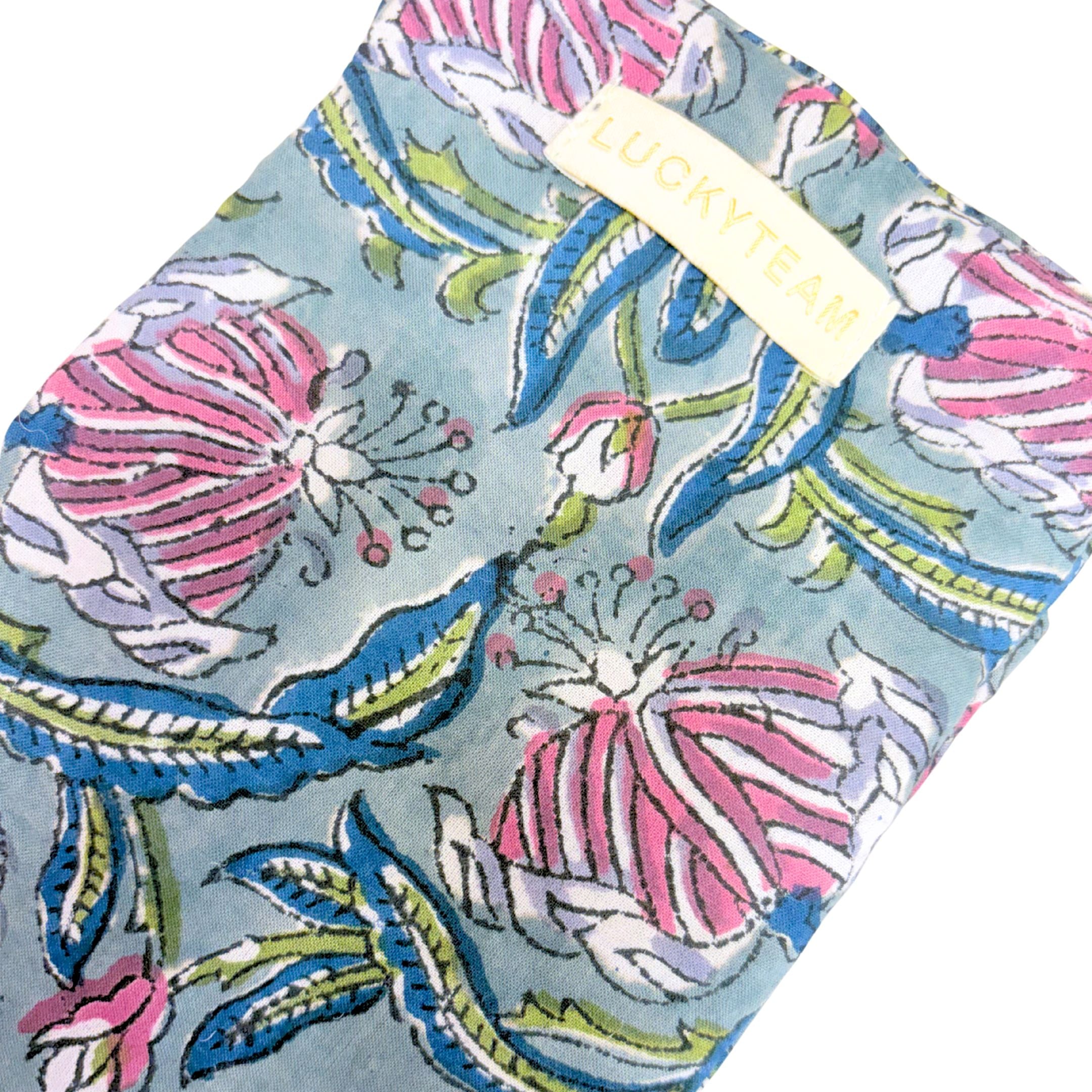 Pochette à bijoux bleue à fleurs roses et violettes